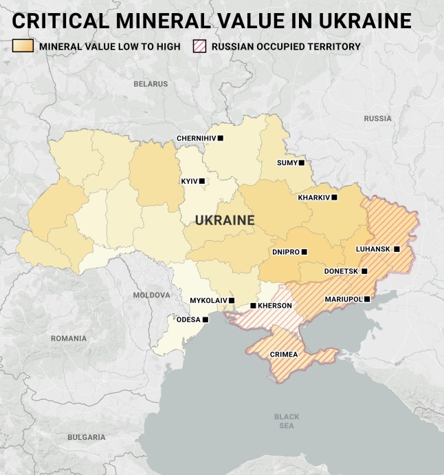 Another key element of Trump’s plan will see the Kremlin gaining access to rare earth minerals in occupied Ukrainian territories.