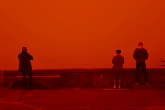 The dust placed a filter-like tint over the island (Picture: Eleftherios Elis/AFP via Getty Images)