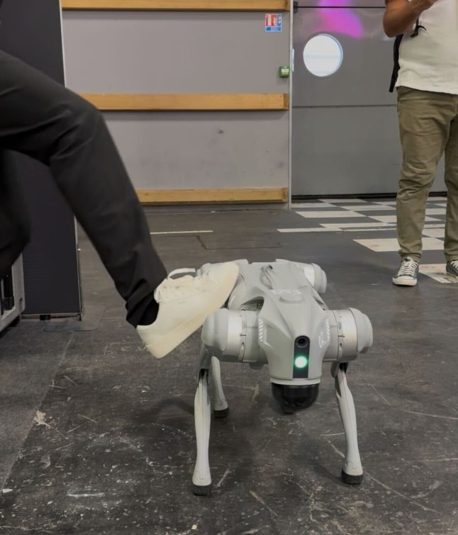 The robo dog is resistant to being knocked over,despite some of the visitors at the conference attempts (Picture: Jen Mills/Metro)